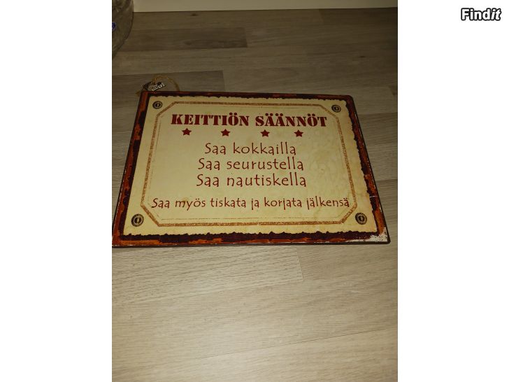 Ehjä siisti Peltinen keittiötaulu teksteillä 35x26.5cm ohut Takana 2 ripustus kohtaa reunoilla