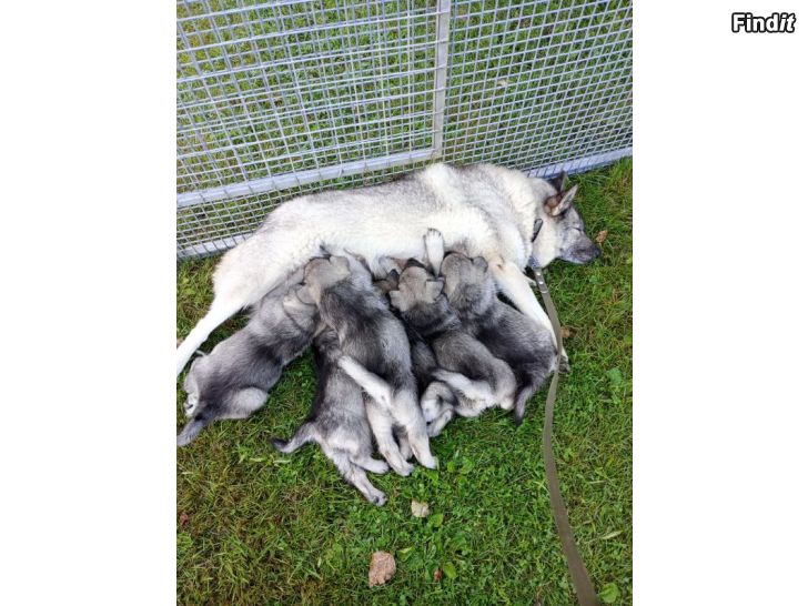 Harmaa Norjan hirvikoiran narttupentu syntynyt 20 ,07 ,2024. KVA vanhemmat: Isällä vielä karhu 1, josta 86p. Emää käytetty karhujahdissa monena kautena. Juuri lisätty kuvia . Kysy lisää.On 1 narttu Krönmäen K R Sini