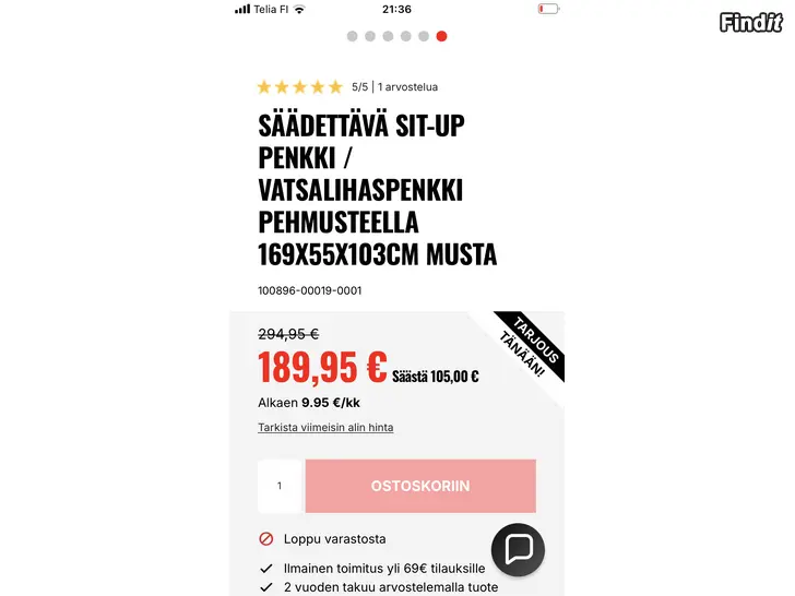 Findit ei vastaa ilmoitetusta tuotteesta tai ilmoituksen sisällöstä. SMS-viestien lähettäminen ilmoittajalle mainostarkoituksessa on kiellettyä. Ilmoittaja ei halua ilmoitus- ym. myyjien soittelevan. Jos sinulla on muuta kysyttävää tai mielipiteitä, ottakaa ystävällisesti yhteyttä asiakaspalveluumme.