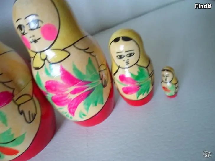 Kuvanmukainen venäläinen maatuska nukke. 8 -osainen. Noin 1960-70-luvulta.