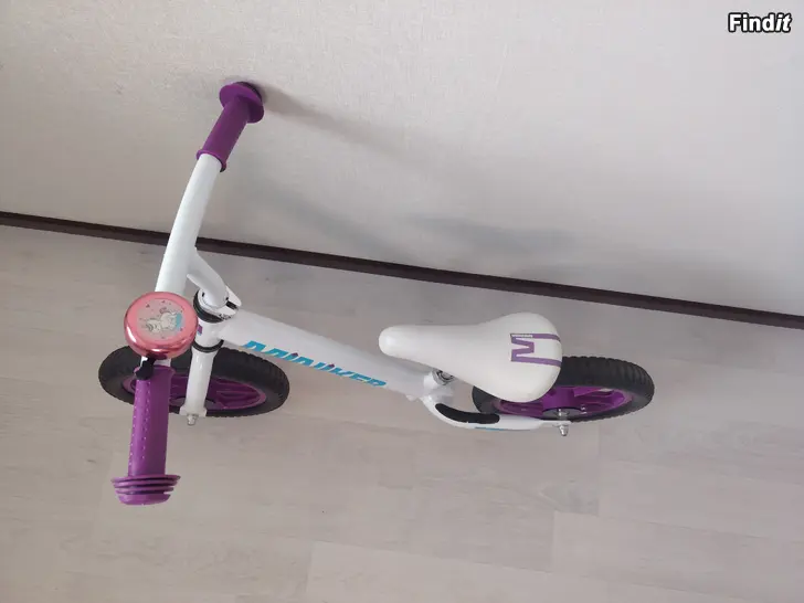 Lasten potkypyörä 12 tuuman MINIKER potkupyörä.Potkupyörä on paras tapa opettaa lapselle pyöräilyssä tarvittavaa tasapainoa.Todella kevyt,joten lapsen on helppo hallita pyörää.Soitokello mukana.Puhkeamattomat renkaat.
