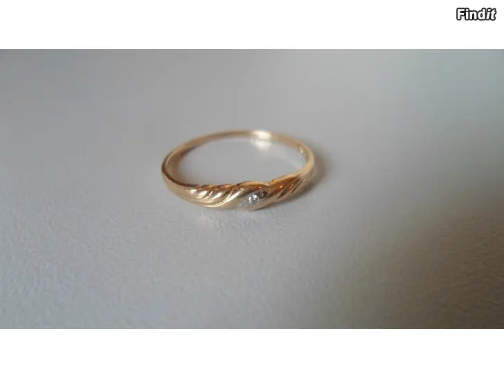 Kultainen siro sormus, jossa aito pieni timantti 0,01ct, ehjä ja kirkas