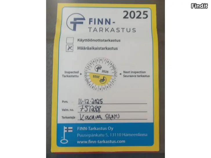Huoltokirja on, huollettu säännöllisesti, katsastettu 11.12.2025, tarkistuspöytäkirja.