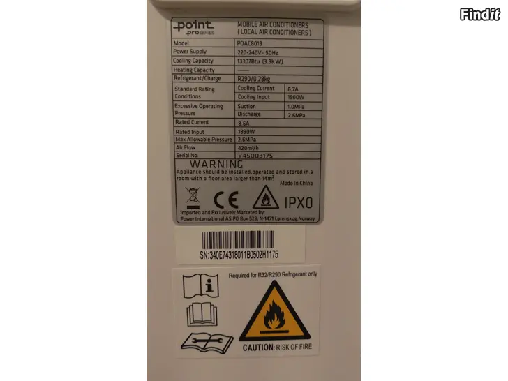 Point luftkonditionerare, använd endast en kort tid. Säljes p.g.a. att bostadsb. installerar fast luftkonditionering. Anv. 2 somrar. Bruksanv. Fjärrkontroll o alla tillbehör finns kvar.