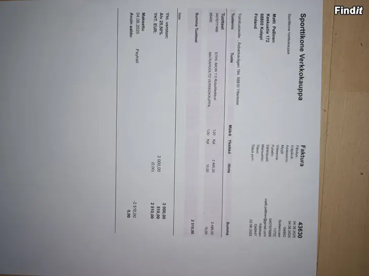 Findit ei vastaa ilmoitetusta tuotteesta tai ilmoituksen sisällöstä. SMS-viestien lähettäminen ilmoittajalle mainostarkoituksessa on kiellettyä. Ilmoittaja ei halua ilmoitus- ym. myyjien soittelevan. Jos sinulla on muuta kysyttävää tai mielipiteitä, ottakaa ystävällisesti yhteyttä asiakaspalveluumme.