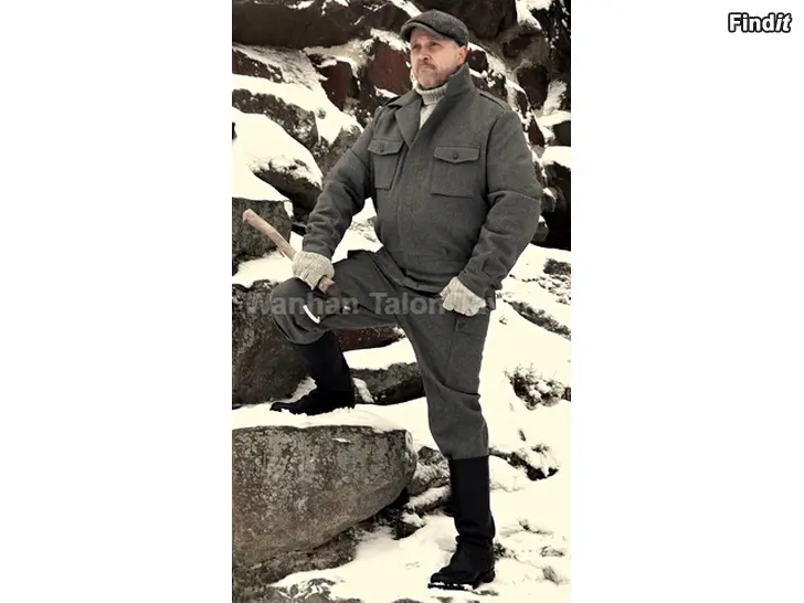 Saatavilla vielä pieni erä käyttämättömiä Suomen armeijan kenttäharmaita sarkapukuja koossa 56. Valmistaja: Valtion Pukutehdas, puvuissa tehtaan laput paikoillaan. hinta: 75 euroa