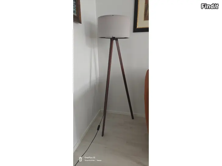 Lattiavalaisimia 2 kpl. Korkeus 140 cm, säädettävissä jaloilla. Varjostimen halkaisija 32 cm. Yhteishintaan 60 EUR tai 35 EUR kpl.