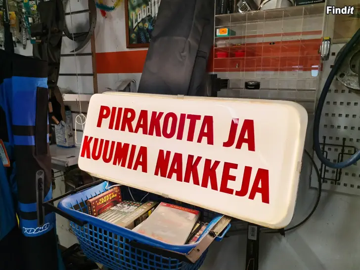 -60 luvulta , vanha ja hauska mainoskyltti.Täysin ehjä,sisällä led-valot katkaisijalla. Komea,vaikkapa äijäluolaan...ym.ym. Sopivaan hintaan 70e !!