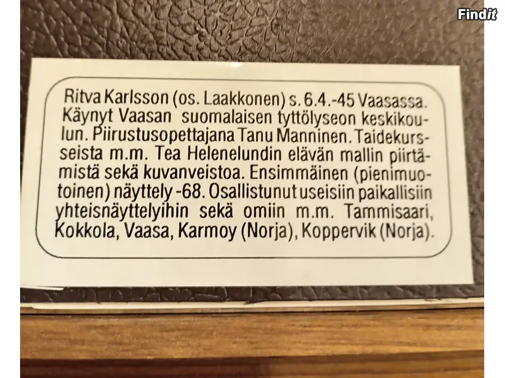 Osasto: Antiikki & Taide Tyyppi: Myydään