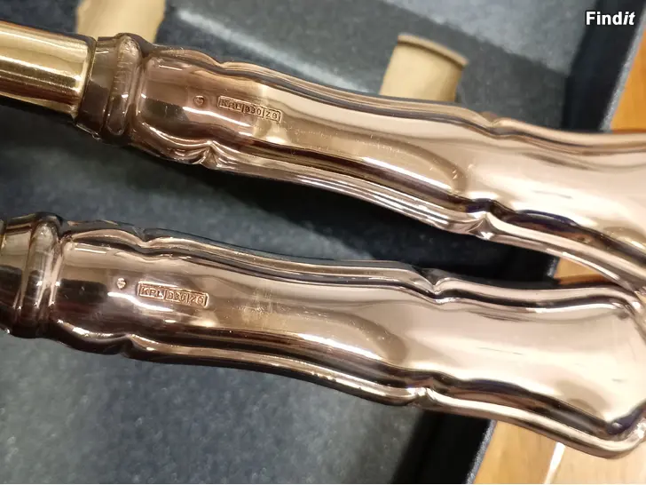 Hopeiset hyväkuntoiset Chippendale salaattiottimet.