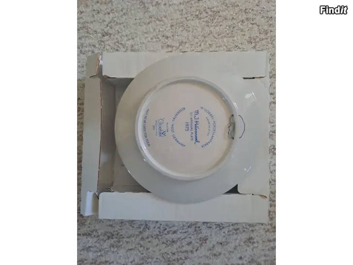 Bildernas M.J 5th annual plate av Tyskt företag. Producerad väst tyskland och siktat för de födda 1975. Ursprungslåda med. Priserna på nätmarknad helt vimsiga. Kan vara 400, 700, 900 ja vet vad som helst. Men 20€ om du vill ha åt dig själv, julklapp eller någon begant som gåva. Plats smedsby Korsholm och där kan vi lätt ordna möte enligt önskemål. Några startbilder börja med