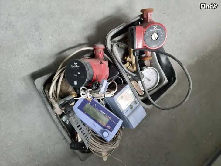 Toimivat lämmönsäätimet Ouman EH800B ja EH80 sekä 2 kpl kiertovesipumppuja Grundfors Alfa 25-60 ja Grundfors Type UPS 25-60. Lisäksi painemittari, lämmitysverkoston täyttöventtiili. Kaikki kuvissa näkyvät osat myydään yhdessä.