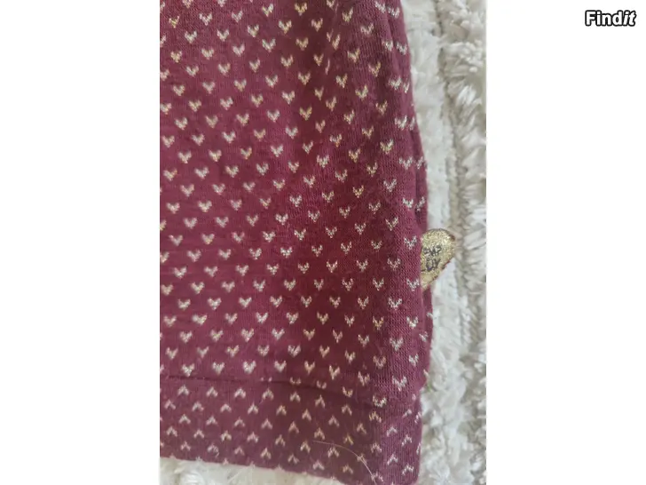 Myydään aivan ihana pdl:n kerran käytetty neule. Koko 158/164 . Materiaali mielyttävän pehmeä,kaunis burgundyn sävy kultaisilla sydämillä. MMM