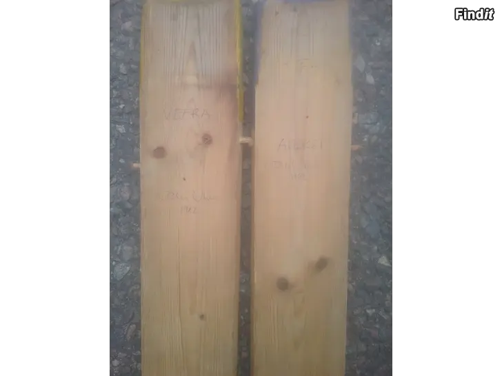 Saavista otetulle laudalle maalatut öljyvärityöt. Tekijä edesmennyt Olli Viiri, maalattu 1982