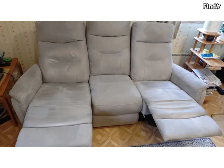 Sohvan reunapaikat on varustettu liukuvilla mekanismeilla, jalkaosat saa nostettua.