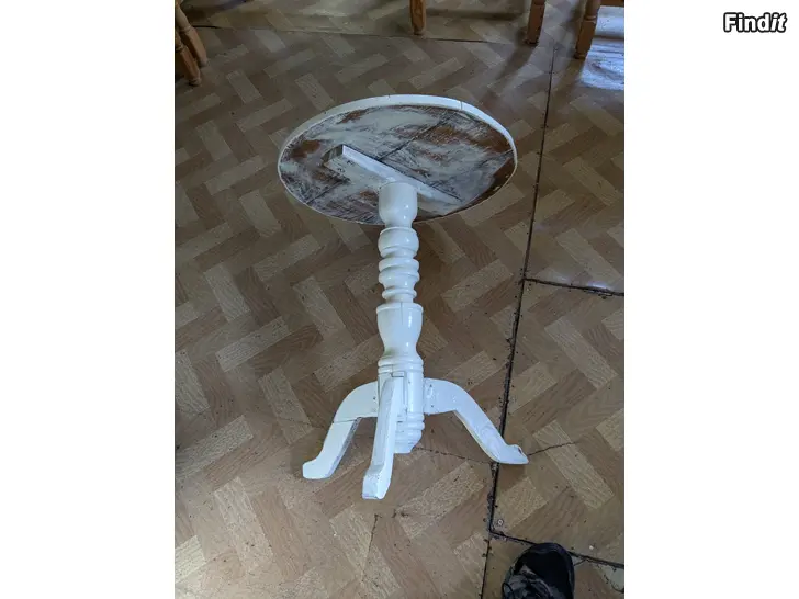 Gammal litet runt bord. Diameter 50 cm, höjd 63 cm. Finns i Såka. Nås på telefon. Myös suomeksi.