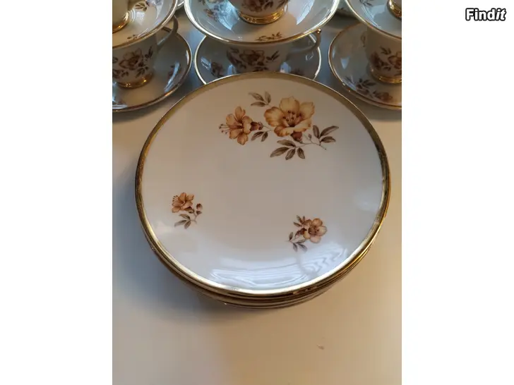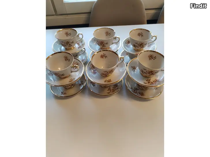 12kpl ehjiä Arabian kahvikuppia. Aluslajtasten öohjissa erilaisia leimoja. Lisäksi 12kpl pulla-asetta. Yhdessä aseissa pieni naarmu joka ei silmälle näy mutta sormessa tuntuu. Hinta/koko setti.