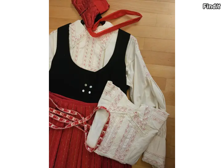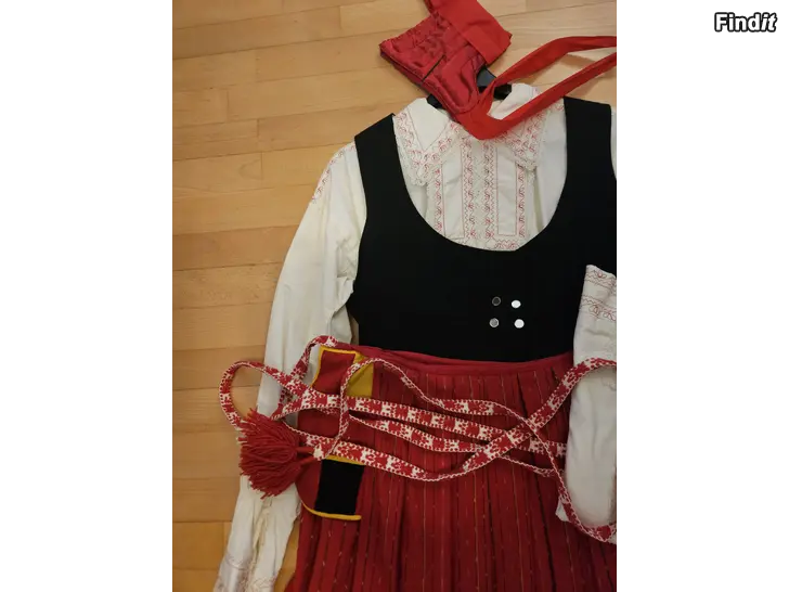 Kokonaisuuteen kuuluu kaksi paitaa, hame, kengät kokoa 5,5, myssy ja säilytyspussi.