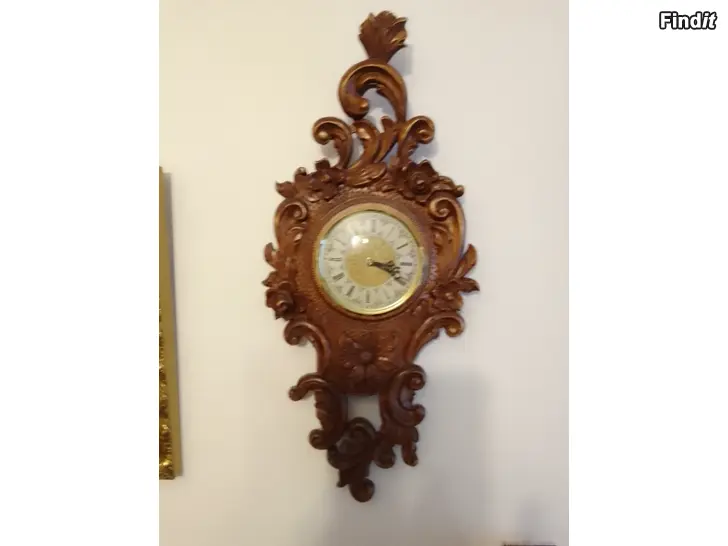 Hienoa puun kaiverrus työtä jossa hyvin toimiva patteri kello vain soitot ja nouto