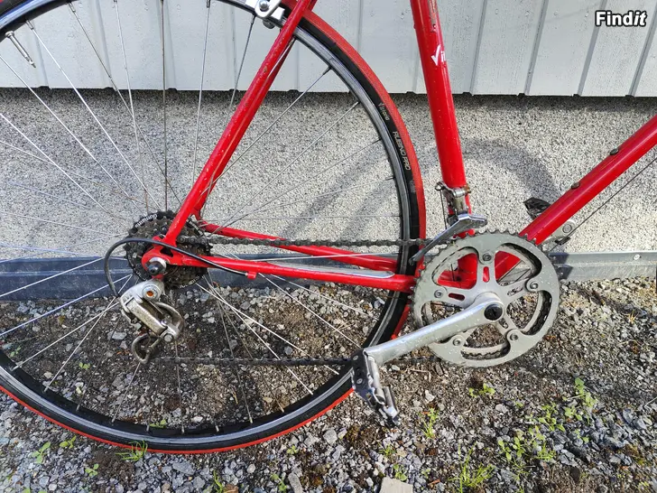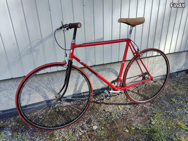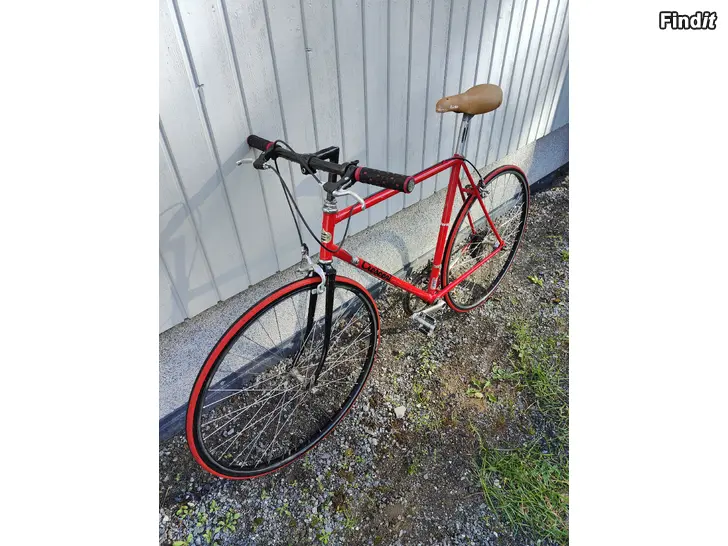 Hieno 80-luvun maantiepyörä, johon vaihdettu suora ohjaustanko kaupungissa pyöräilyä ajatellen.