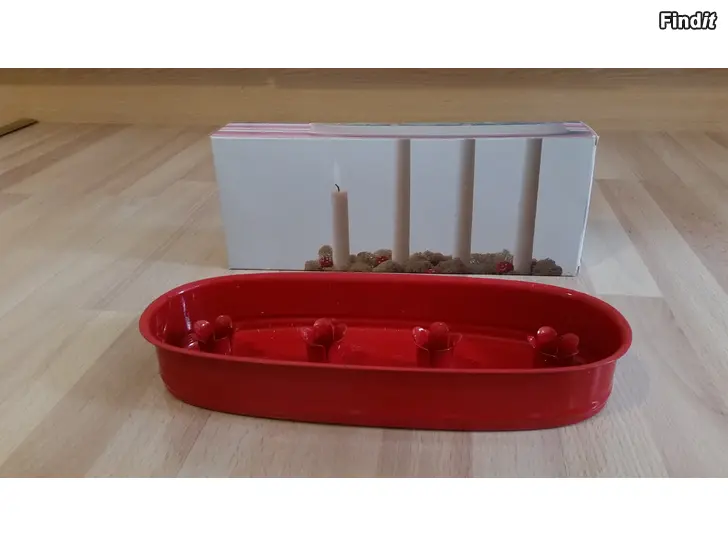 punainen vintage adventtikynttilänjalka 11x29cm 1980-luvulta