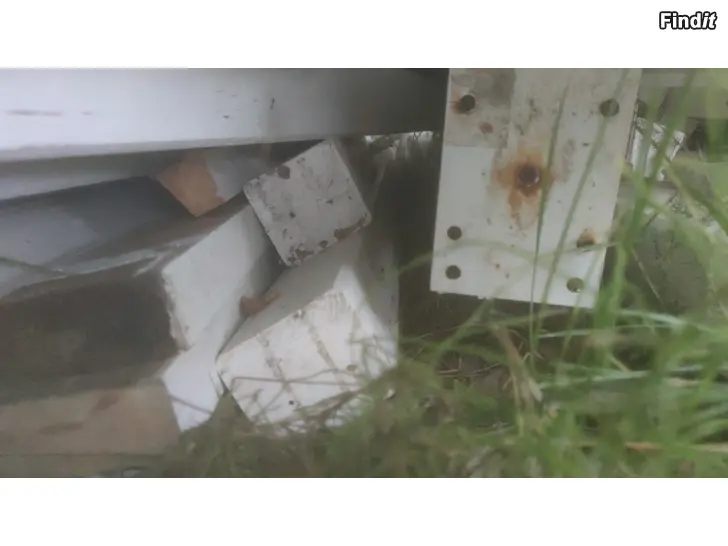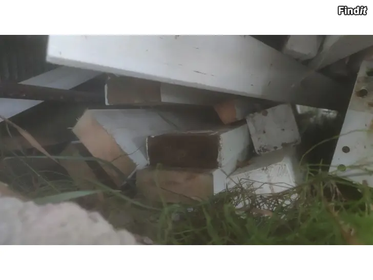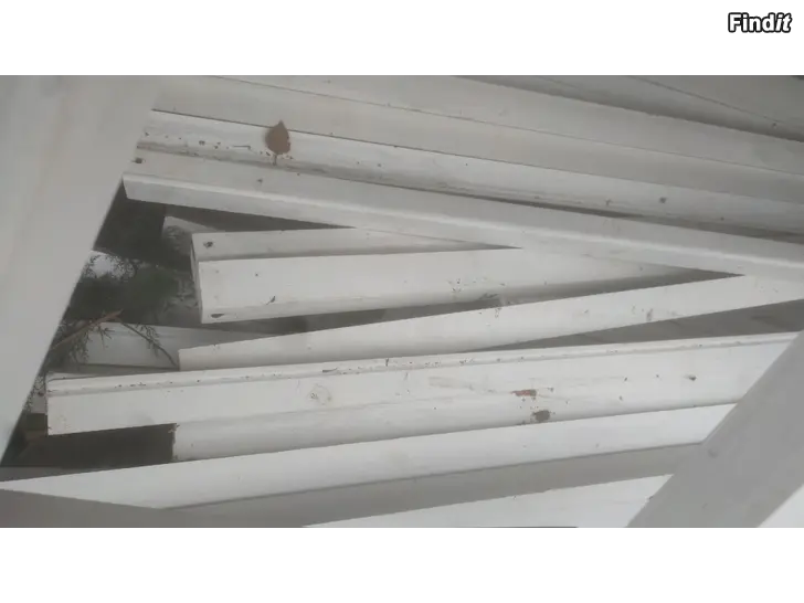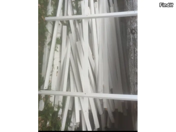 Myydään iso erä hyväkuntoisia valkoiseksi maalattuja puutolppia, joissa jokaisessa on vahva metallinen jalka / kiinnityslevy.