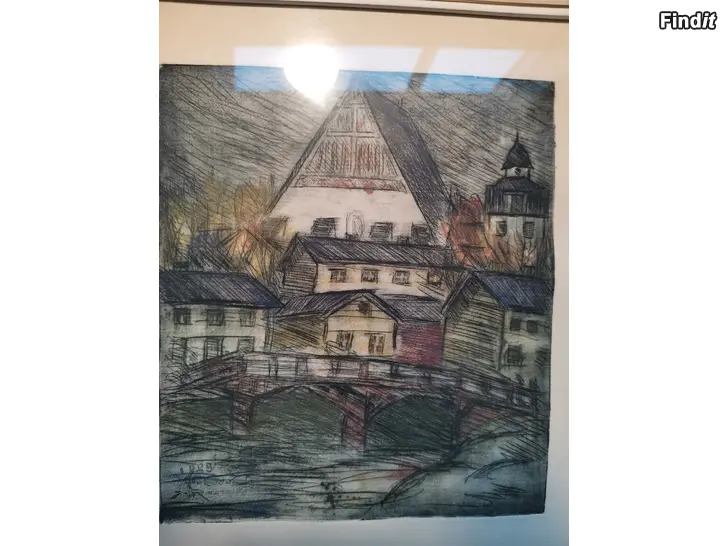 Kuvakoko 23x26 cm, kehyksineen 35x39 cm. Laattasigneeraus.