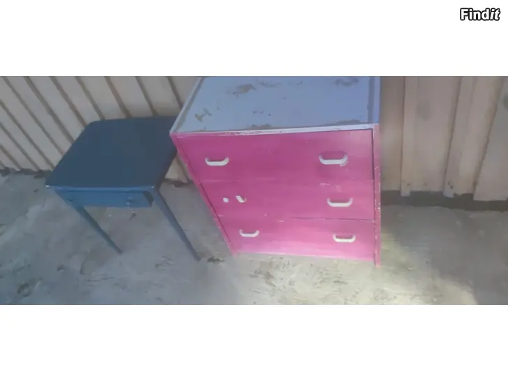 Myydään siisti vaaleanpunainen lipasto 3 laatikkoa sekä sininen yöpöytä yhdessä