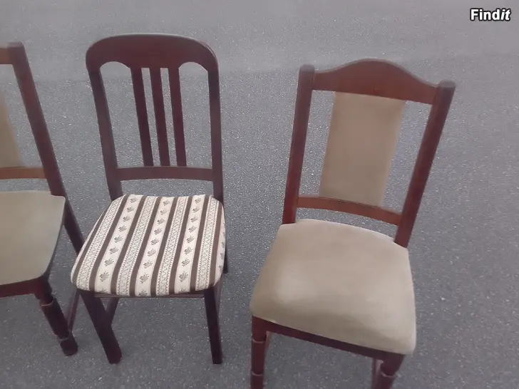 4kpl puutuoleja 10 euroa tai 2,50 kappale. 4 stycken trästolar 10 euro eller 2,50 per styck. Puh/Tel 0407216109