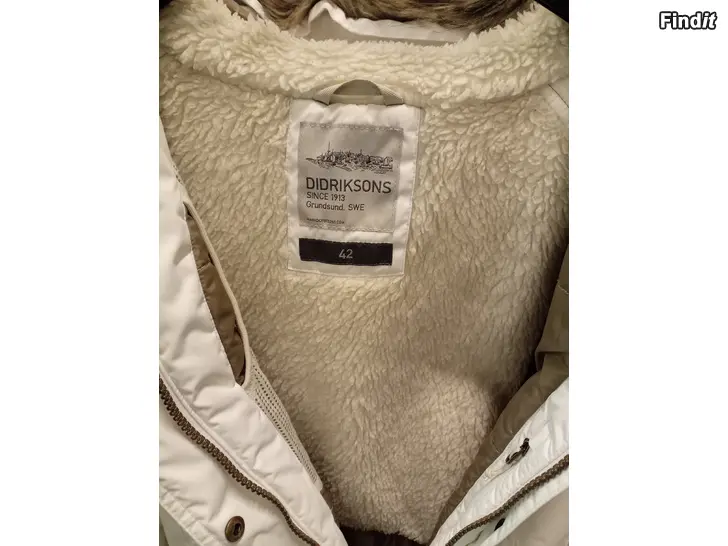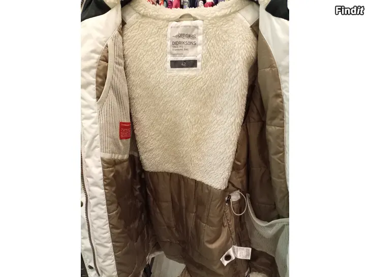 Hyväkuntoinen valkoinen Didriksons Greta talviparkatakki kokoa 42.
