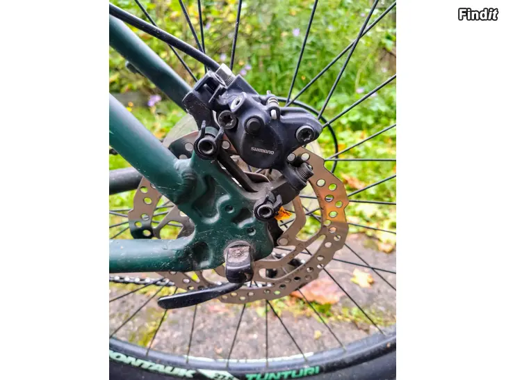 Boys and young mens mountain bike. The bicycle has been used for several years, but it still works well. 27.5 inch tires, and frame size 48 cm, suitable for 165-175 cm tall rider. Aluminum frame, 24-speed gear system, two handbrakes no foot brake. Front suspension is Suntour XCM, 100 mm front suspension fork. The handbrakes are hydraulic disc brakes, comfortably light and accurate to use. Tires are still in good condition, because the bike has been mostly used on city roads. In Helsinki.