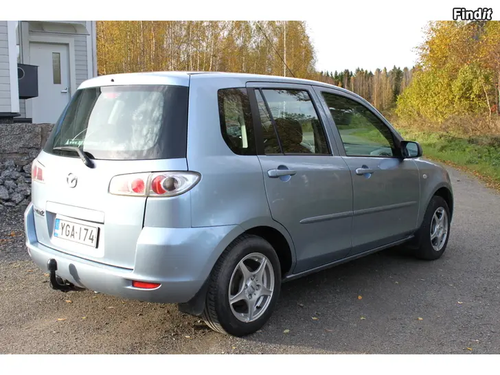 Mazda 2 viisiovinen farmari 1.4 80 hv. Auto on siisti, todella vähän ajettu, juuri huollettu. Varusteita mm: kahdet renkaat, kesärenkaat aluvanteilla, lohkolämmitin, sisätilan pistoke, sisätilan lämmitin, vetokoukku, ilmastointi, sähkötoimiset lasit ja peilit, sumuvalot, huoltokirja ym.
