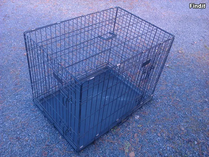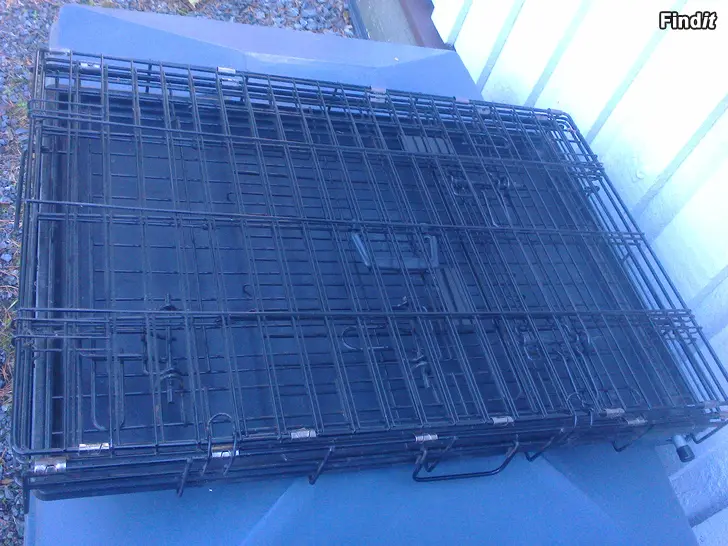 Siisti... ovet sivussa ja päädyssä pohjalla muovinen kaukalo mitat 75cm x55cm korkeus 57cm. Sopii esim. reeverille,pystykorvalle ja itellä ollu ajokoira narttukin täällä.