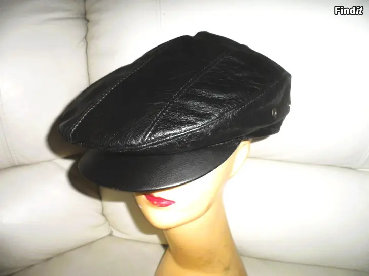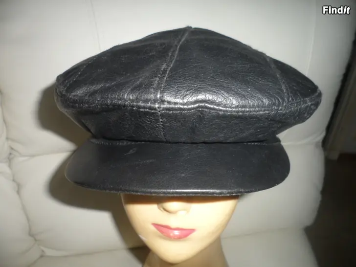 Laadukas pehmeä nahka. Musta. Koko n.57-58. Nahkalippis/Ajurin hattu. Unisex.