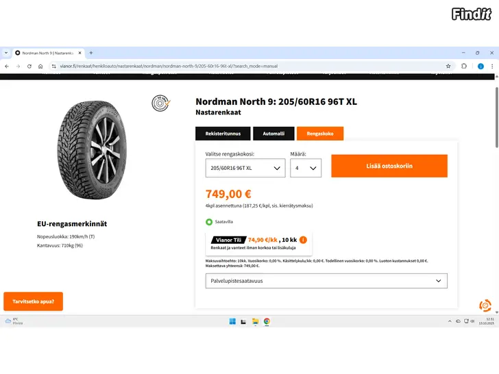 MYYDÄÄN UUTTA VASTAAVAT NOKIAN NORDMAN NORTH9 205/60/16 NASTARNKAAT. AJETTU ALLE 2000KM. VALMISTETTU 42/23. UUDET VIANORISSA 749e KTS. KUVA, TÄSTÄ NYT UUTTA VASTAAVAT LÄHES PUOLEEN HINTAAN! VAIN NOUTO TAI MAHDOLLINEN LÄHETYS MATKAHUOLLON KAUTTA SIS. NOUTO JA TOIMITUS KOTIOVELLE +99,90e EI TEKSTIVIESTEJÄ!!!