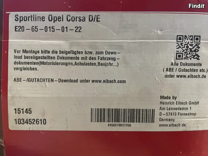 Auto lähti, mutta 200km ajetut erittäin laadukkaat Eibach madallusjouset jäivät. Madaltavat -35mm. Sopivat Opel Corsa D ja E-mallit sekä Opel Adam. Toisin sanoen Corsiin vuosimallit 2004 - tämä päivä sekä jokaiseen Adamiin.