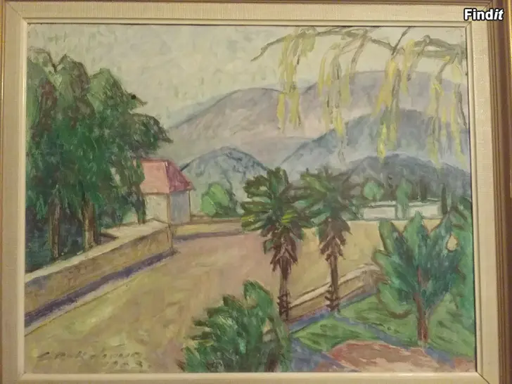 Mukava etelännäkymä öljyväreillä kankaalle, signeerattu LR Kalervo 69