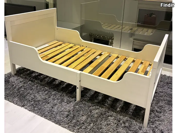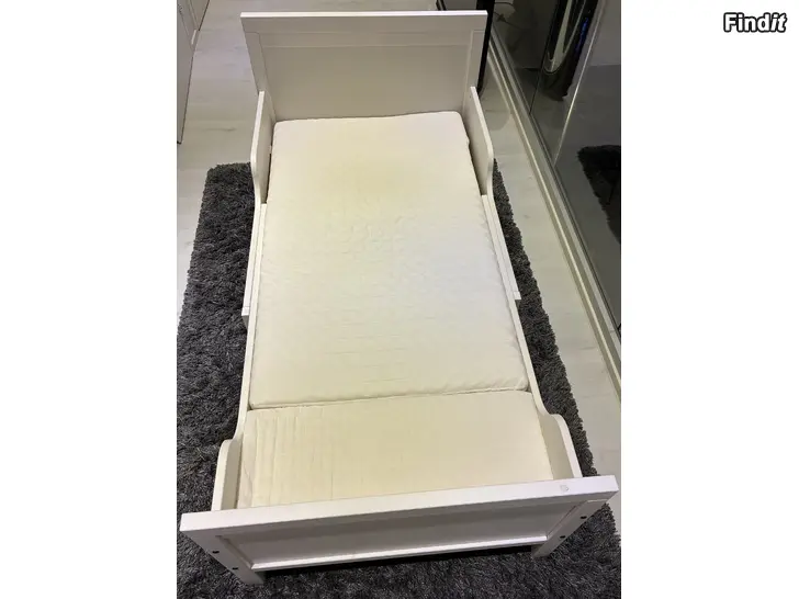 Ikean jatkettava SUNDVIK-sänky. Mukaan tulee sälepohja ja 3-osainen VYSSA-patja.