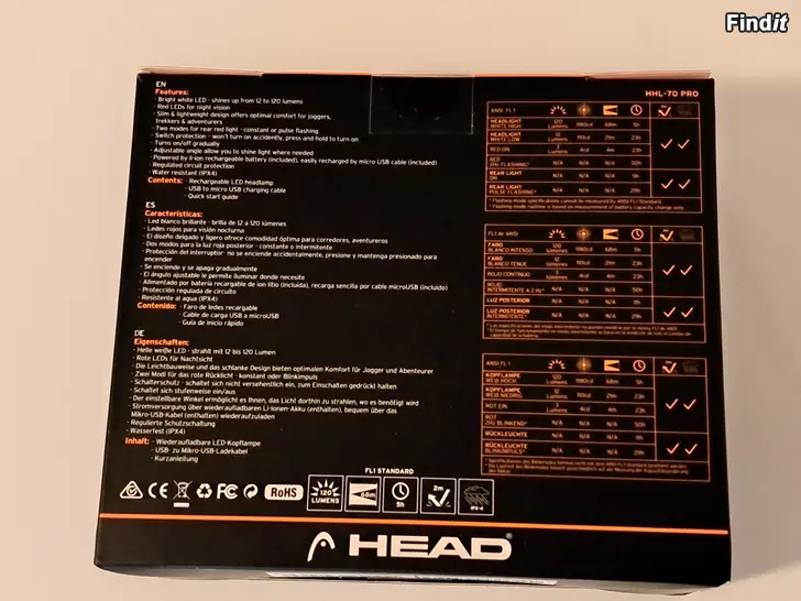 Head -otsalamppu. Ladattava akkuparisto, mukana latauskaapeli. Avaamaton myyntipakkaus.