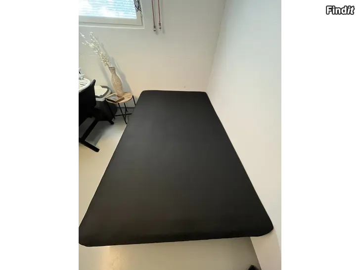 Musta runkopatjasänky ilman petauspatjaa. Hyvässä kunnossa, mutta kankaassa pari viiltonaarmua, näkyy kuvissa.