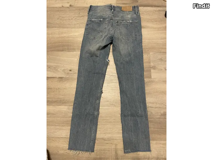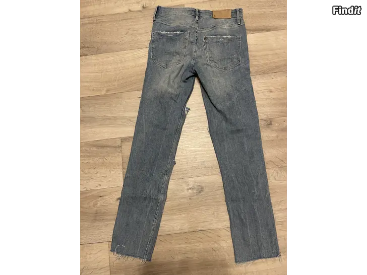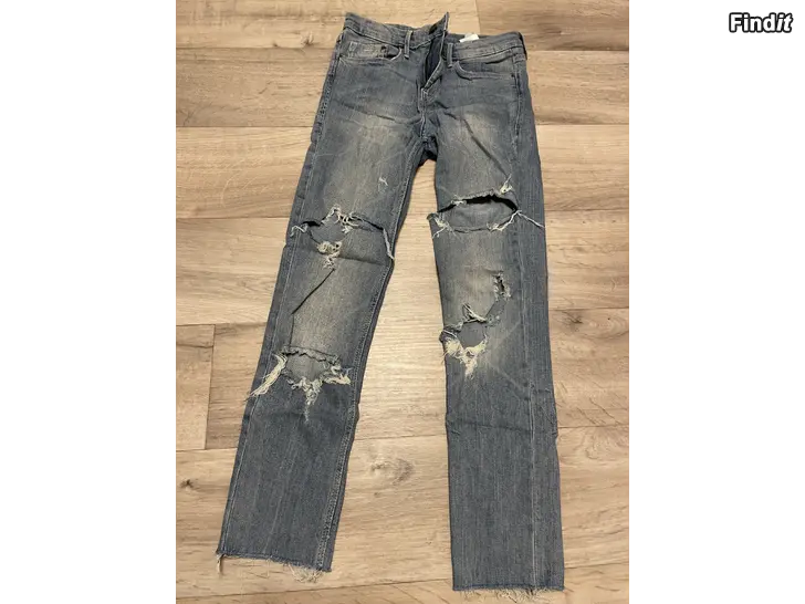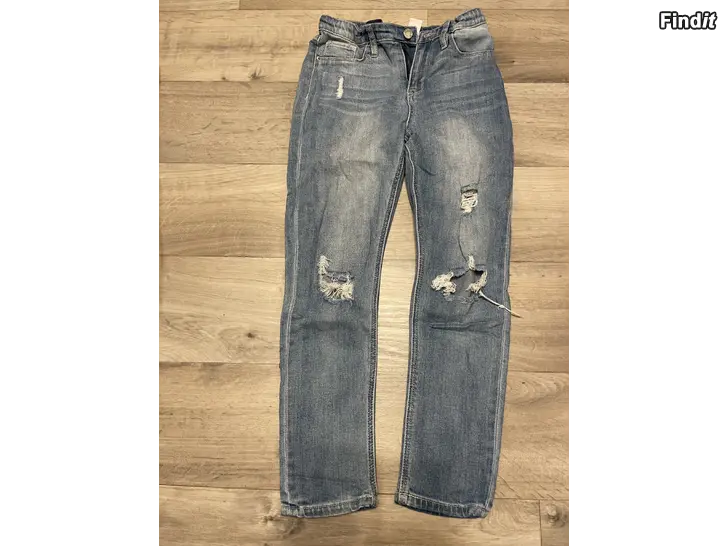Blåa jeans byxor med hål i knäna. Båda är i nummer 152.