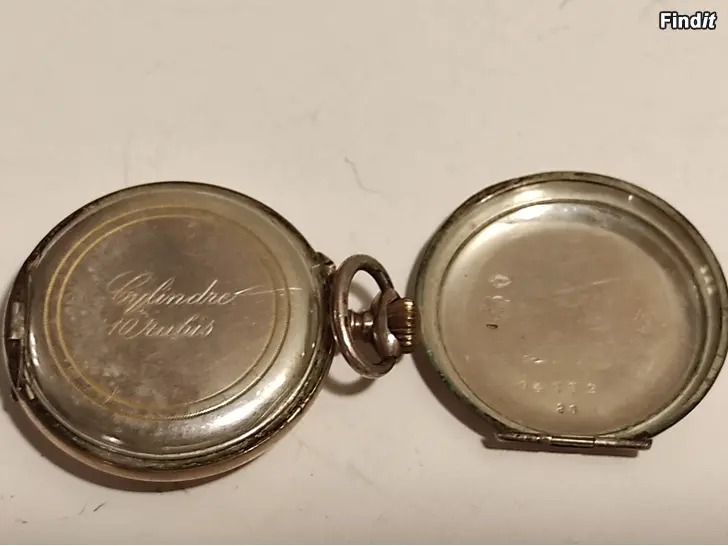 Antiikkinen Hopeinen taskukello. 10 rubis ,0,800. Takakansi irti ja toiminnasta ei tietoa. Pikaisella testauksella sekunttikello lähtee toimimaan ja pysähtyy hetken kuluttua joten vaatii ainakin huoltoa. Myydään edullisesti