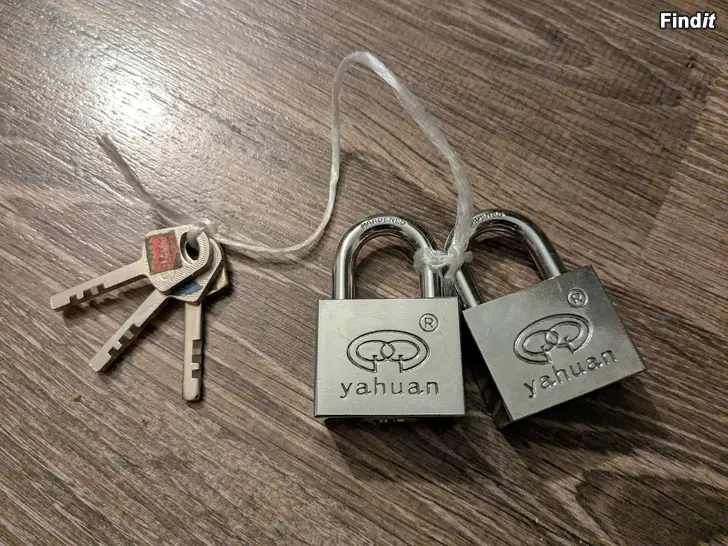 Säljes två stycken Yahuan hänglås med samma nyckelserie, minst 2 stycken nycklar. Låsen är i bra använt skick. Bygeln 7 mm tjock, totalhöjd 62 mm. Totalt 5 € för allt. Nås på tel. Myös suomeksi.