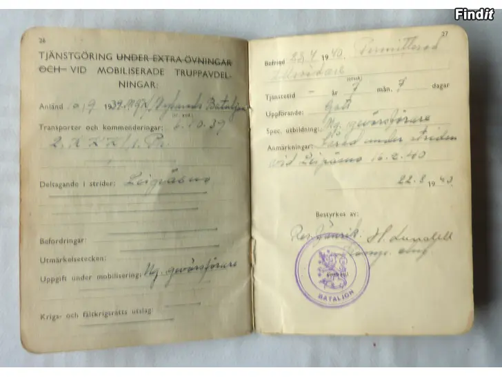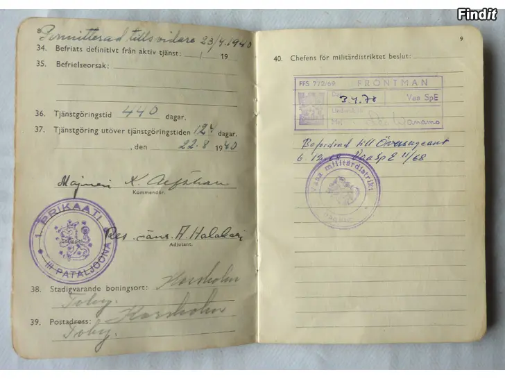 myyn kuvissa näkyvän vanhan sotilasspassin, jossa