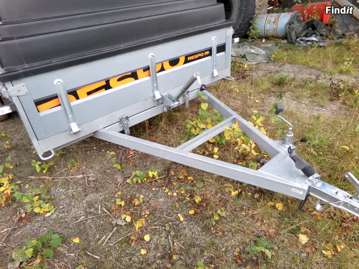 Iso Respo kuomukärry kippitoiminnalla. Mitat sisä pituus 410cm, sisäleveys 185 cm. Laitakorkeus 42cm ja kuomun korkeus 120 cm.