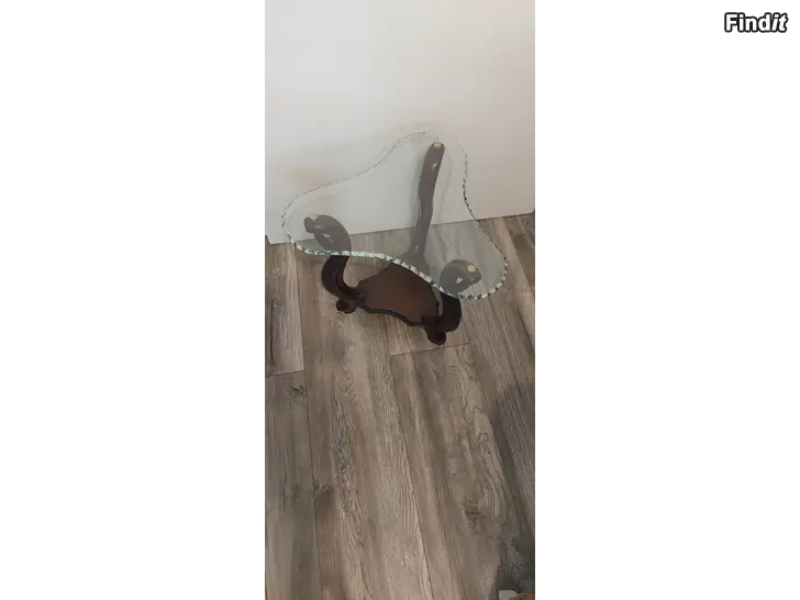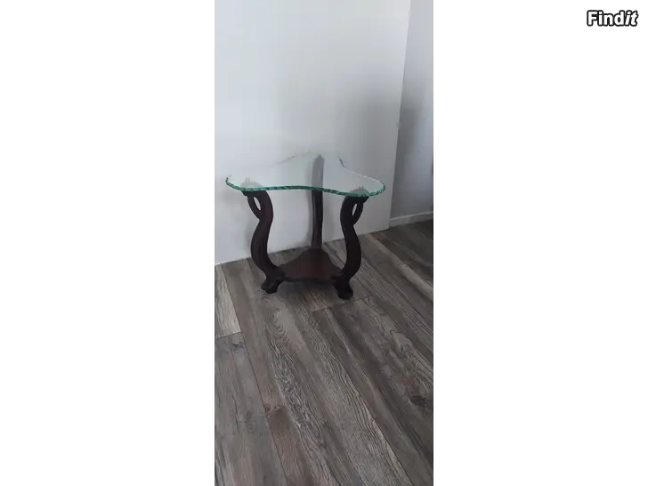 Pieni pöytä koristetulla lasikannella mitat korkeus 45cm leveys 49cm