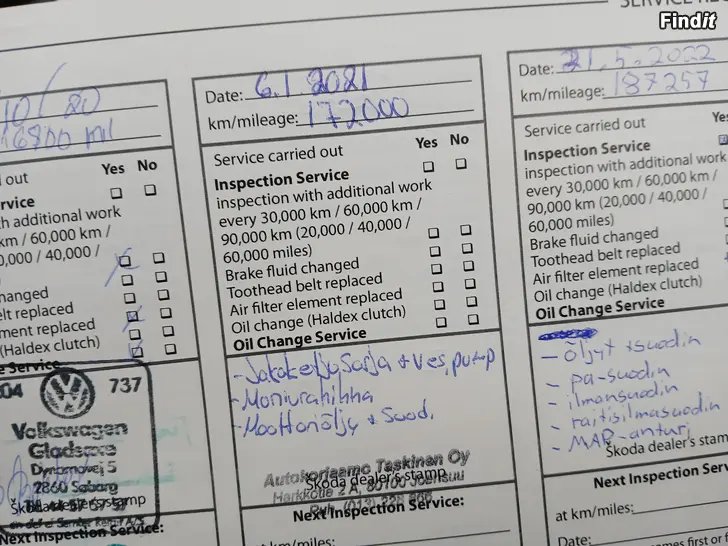 Seuraava katsastus on tulossa tammikuussa -26, huollettu on .
