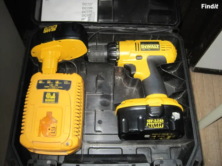 DeWALT DC 759 . Akut 18v , 3Ah . Kone on hyvässä kunnossa. Ei ole ollut ammattikäytössä.