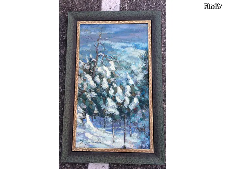 Hieno Harri Junnilan talvinen öljyvärimaalaus kankaalle