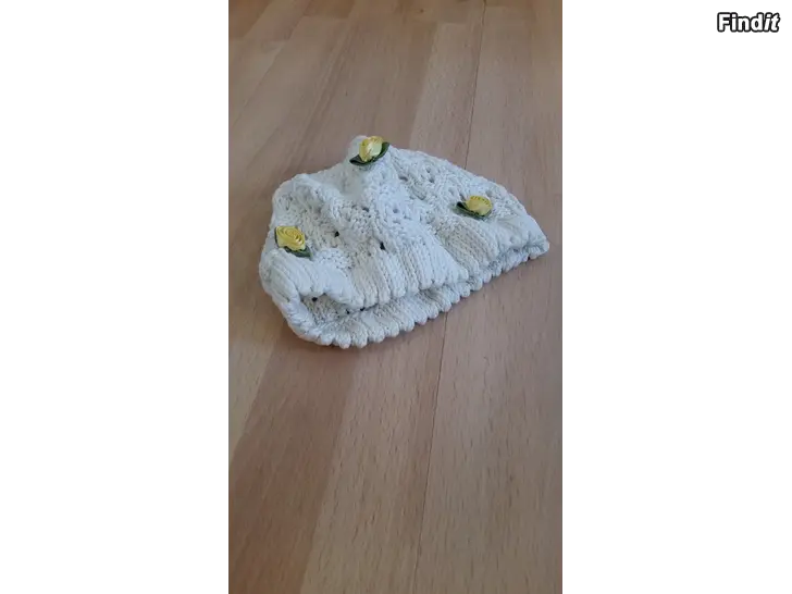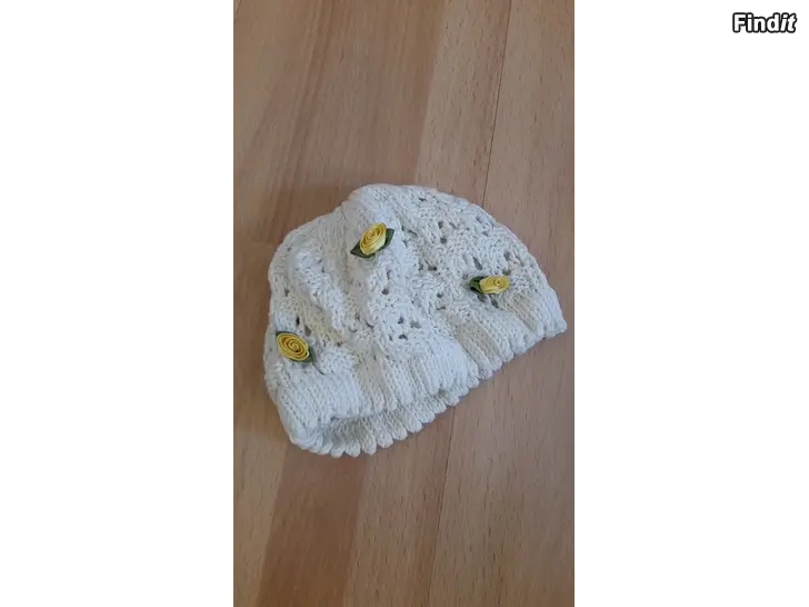 Neulepipo valkoinen pitsimalli keltaiset ruusukoristeet -2e